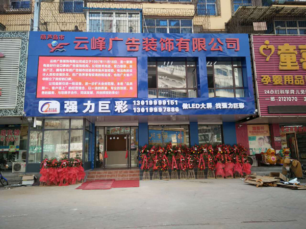 葫蘆島市云峰廣告裝飾有限公司自創立以來,一直致力于廣告牌的設計,噴繪,制作,安裝、LED工程、亮化工程、數碼圖文、圍擋制作安裝、三面翻廣告、大型擎天柱廣告、草坪牌、指示牌、雕刻背景墻、燈箱設計、標識標牌、金屬制品、亞克力字、展臺展柜、取款機隔斷、取款機隔斷等一體化服務,是葫蘆島市噴繪行業大規模實業公司。